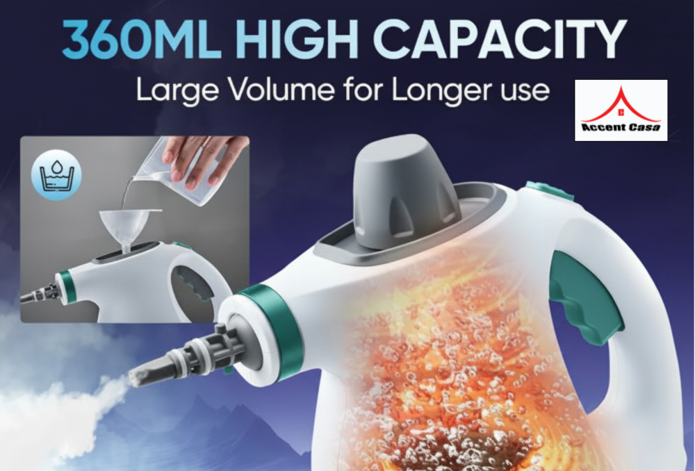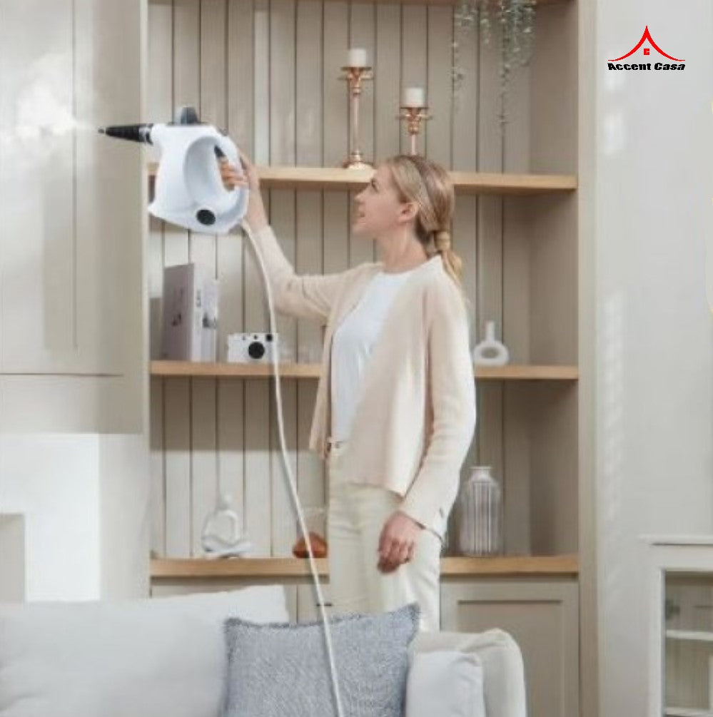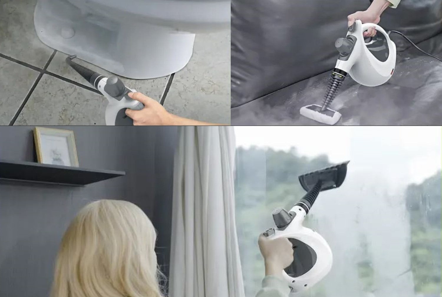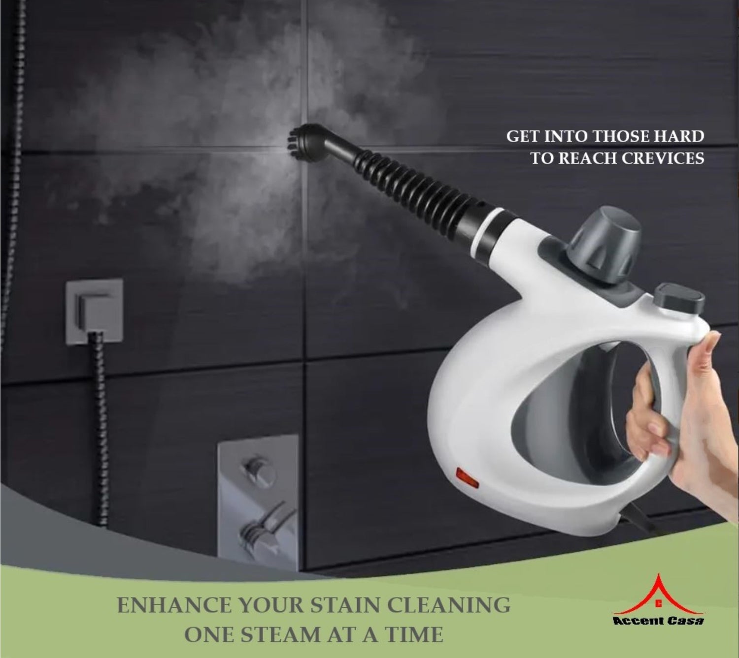 The steamer is a versatile all-in-one cleaning solution, tackling odors, stains, and hard-to-reach spots effortlessly, ideal for both everyday messes and deep cleaning.